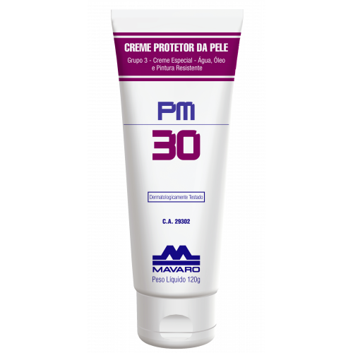 Descrição: Creme protetor: água, óleo, pintura, ácido e micro-organismo resistente. Com FPS de nível 30. Grupo: N° CA: Grupo 3 29302 *(*) CA para agentes químicos e micro-organismos testados Indicação: Protege a pele do usuário contra bactérias aeróbias, mesófilas, Staphylococcus aureus, Salmonela cholerasuis, coliformes totais e fecais e fungos, tais como: Aspergillus sp e Penicillium sp.Atua também contra a agressividade de agentes químicos como: água, solventes, óleo mineral, óleo diesel, Thinner, acetona, querosene, alguns ácidos diluídos em água (ácido sulfúrico a 15%, ácido acético a 15%, ácido clorídrico a 15% e hidróxido de sódio a 10%).Contém filtros solares químico e físico de nível 30 que protegem a pele contra a ação nociva das radiações UVA e UVB. Características Técnicas: – Ação antisséptica- FPS nível 30- Não sai em contato com água ou suor- Contém propriedade hidratante- Removível com água e sabonete- Dermatologicamente testado Embalagens: – Bisnaga 120g